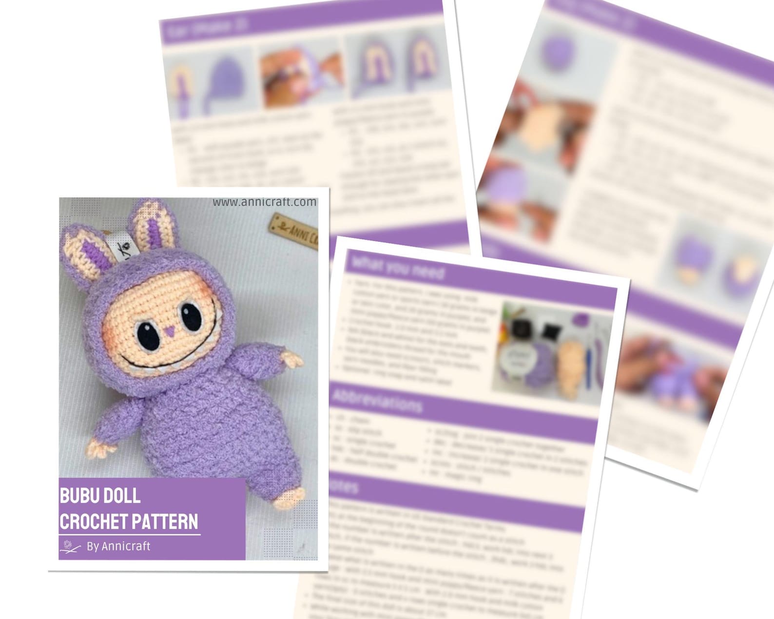 Create your own adorable Bubu Doll—a cozy, huggable little monster in a bunny suit. This listing is for a digital crochet pattern with a step-by-step video tutorial, perfect for gifts, collections, and handmade lovers.